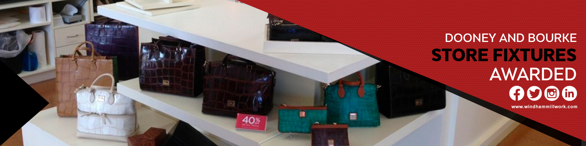 Windham Millwork, Inc has provided a complete store fixture package for Dooney & Bourke in Livermore, CA this past year and now has another store in the works. Dooney & Bourke, founded in 1975, is a company specializing in fashion accessories, such as handbags, iPod cases, luggage, bracelets, watches, briefcases and a limited clothing line. WMI has helped bring their design to reality in their new California store this past year and will now be adding Seattle, WA to their to do list.