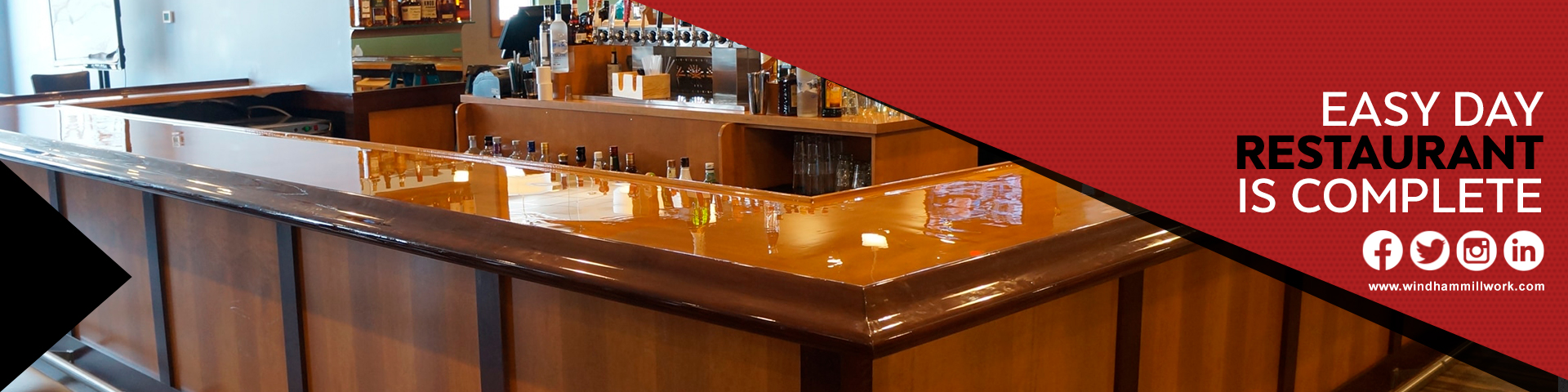 Windham Millwork was responsible for the entire design, manufacturing and installation of all the millwork at Easy Day Restaurant and Bowling Alley. Easy Day is a family oriented restaurant and entertainment center. With 10 lanes of bowling, a restaurant, lounge and large bar all in one venue it makes it a destination spot for families or friends to go and have a good time.