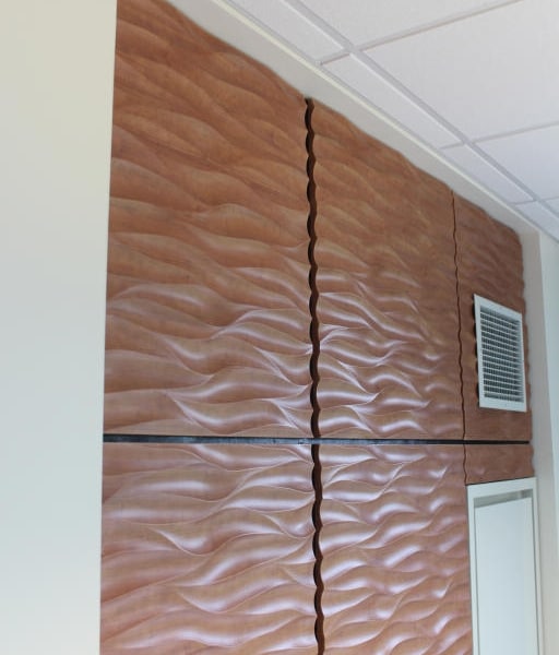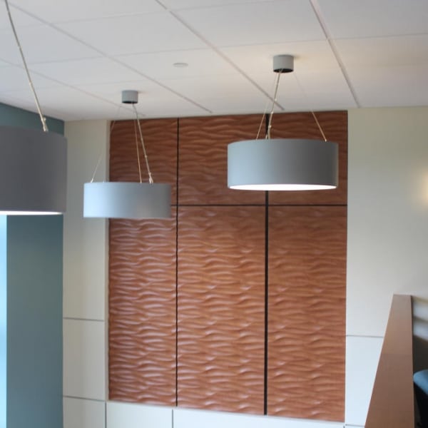 Wall fixtures were made custom to the design to help decorate the room and also help with noise cancellation. Learn more about wall fixtures.