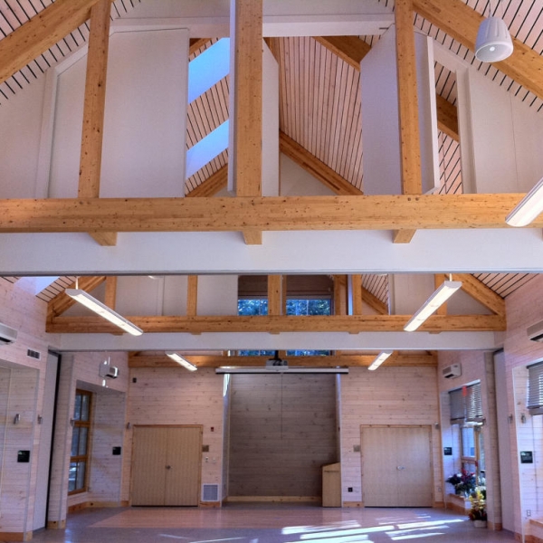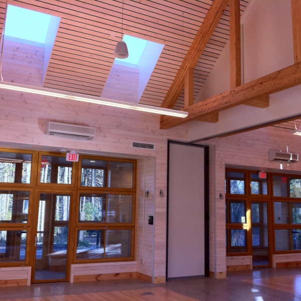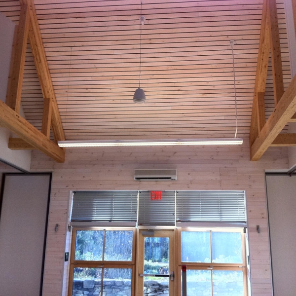 Maine Botanical Gardens is a project that emphasizes the capabilities of Windham Millwork, Inc. WMI was responsible for ceiling trim, cabinets and countertops, base, window sills and tongue and groove interior walls.