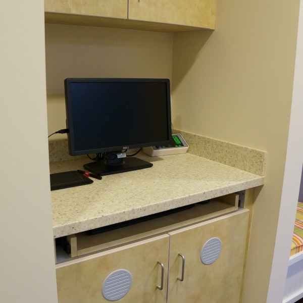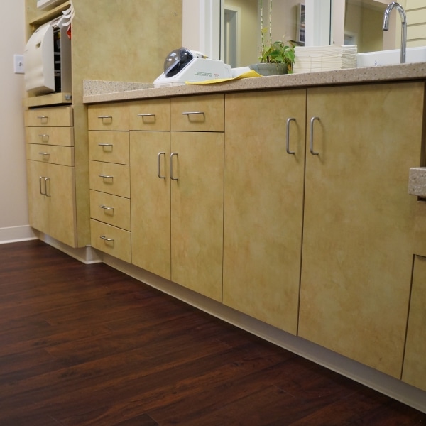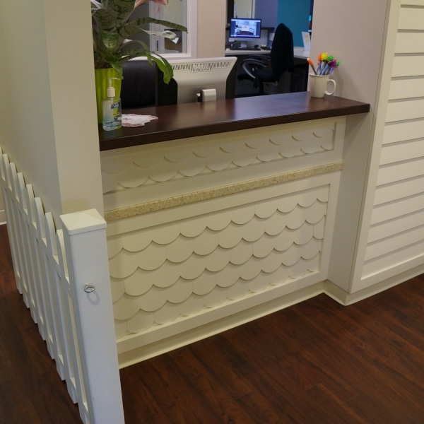Windham Millwork, Inc was called upon to re install and recreate from design, custom millwork for Southern Maine Pediatric Dentistry. WMI was responsible for all interior woodworking needs in the new office in Portland. Solid surface countertops, plastic laminate countertops and curved countertops are scene throughout the office. Casework and cabinets were built for offices, prep rooms, exam rooms and the reception area.