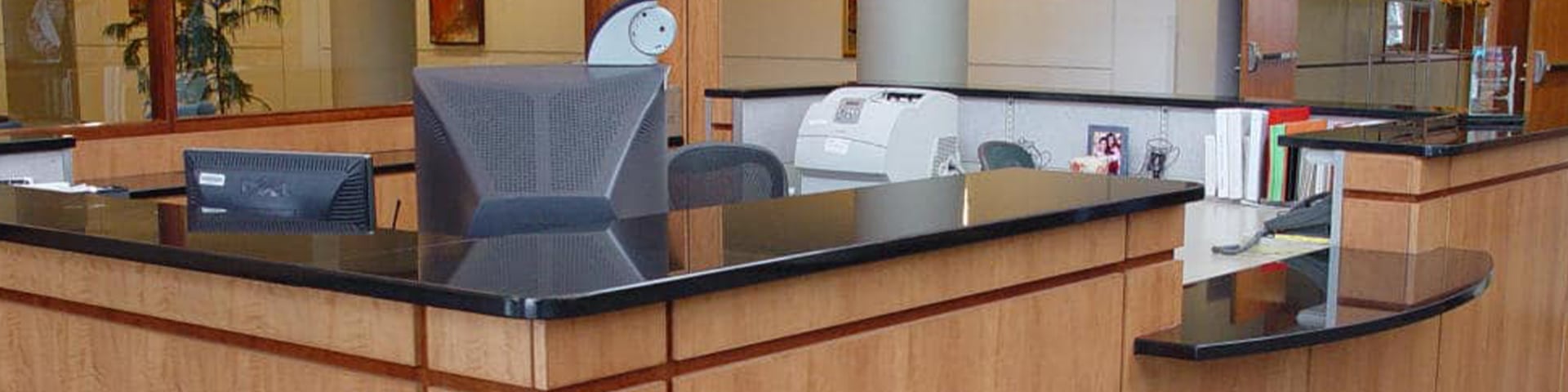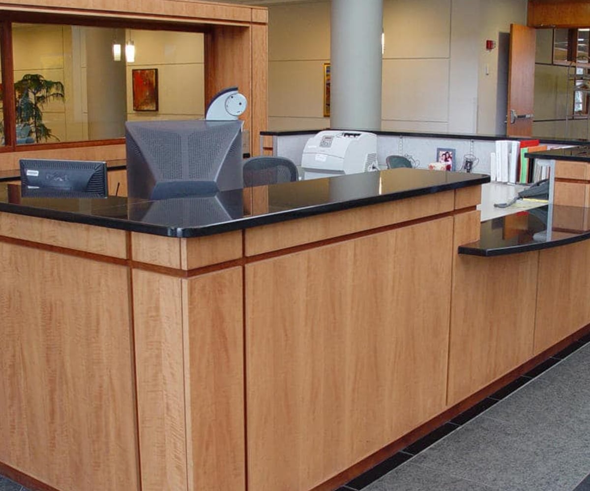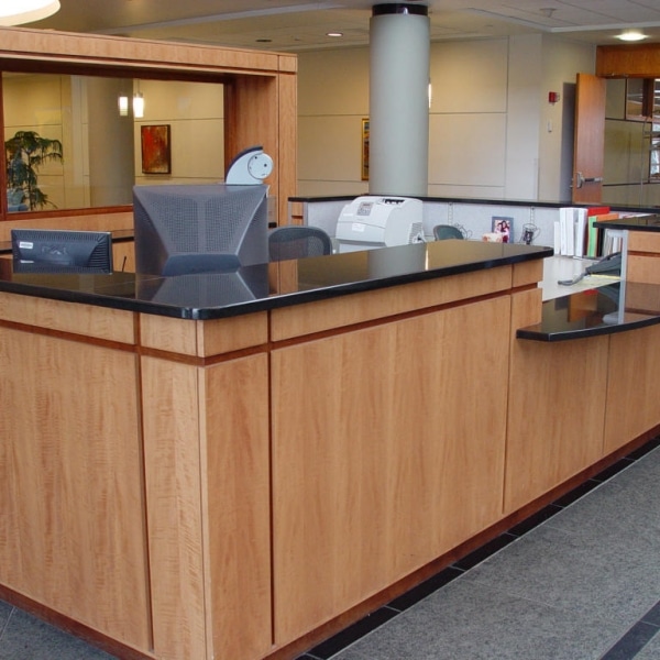 Reception desks are custom designed and made by Windham Millwork Inc. We have created several different styles of custom reception desks for a variety of commercial businesses. Furthermore, we can work with you to design the perfect reception desk for your business. Learn more about reception desks.